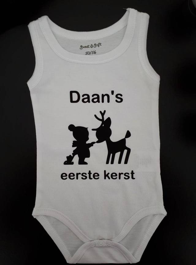 Bedrukte rompertje met naam, €5,00 per stuk.In een andere kleur is natuurlijk geen enkel probleem!Mogelijke kleuren voor op de romper: zwart, groen, oranje, roze, blauw, geel, zilver en goud.